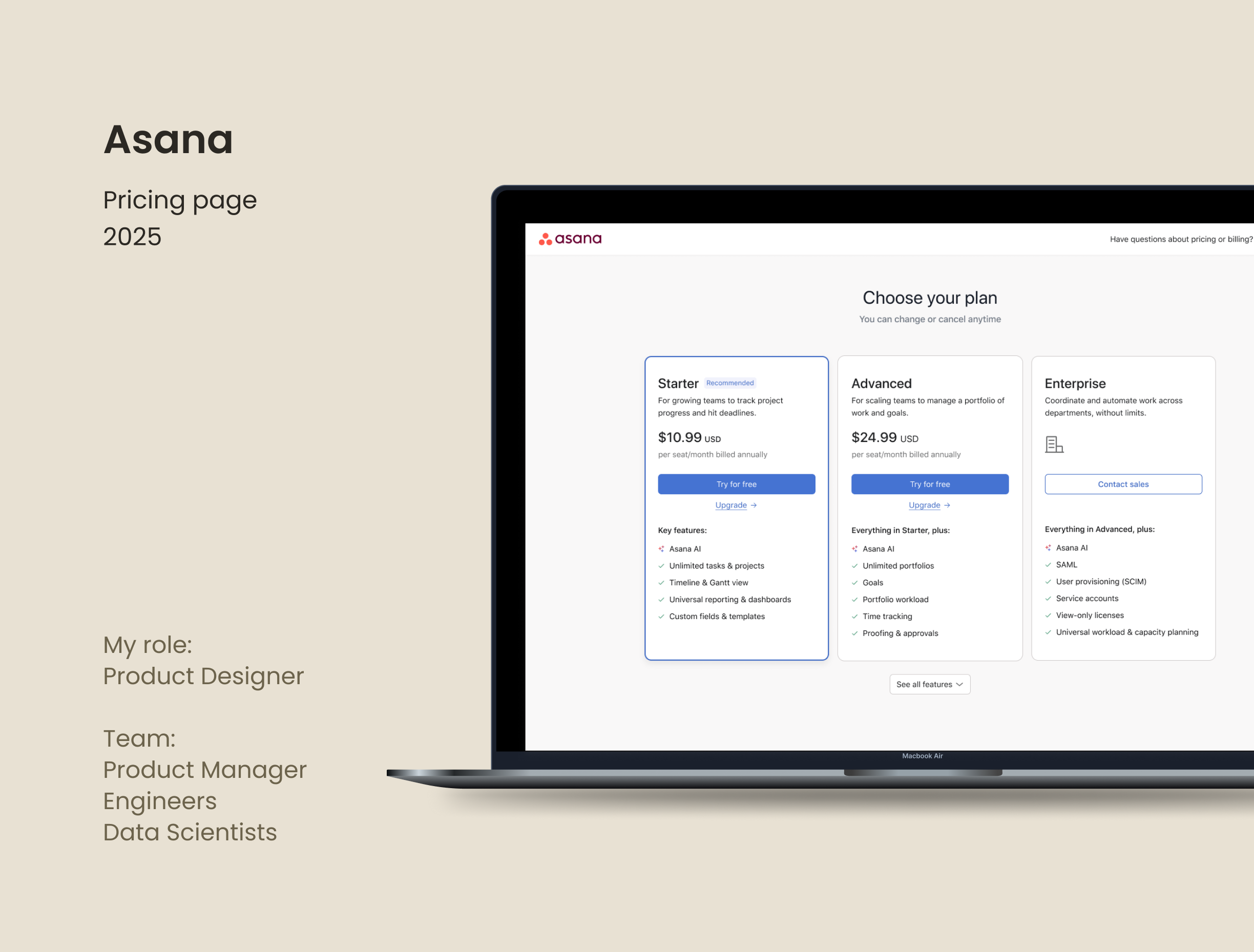 Unifying Asana's pricing page to increase free-to-paid conversion